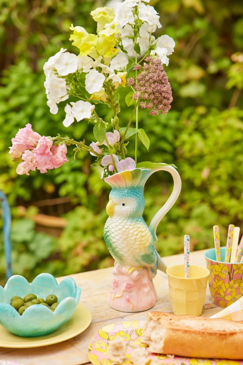 Den fineste kande formet som en eksotisk fugl i de flotteste farver. Kanden måler H25 x L14 x B9,5 cm