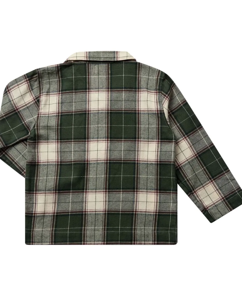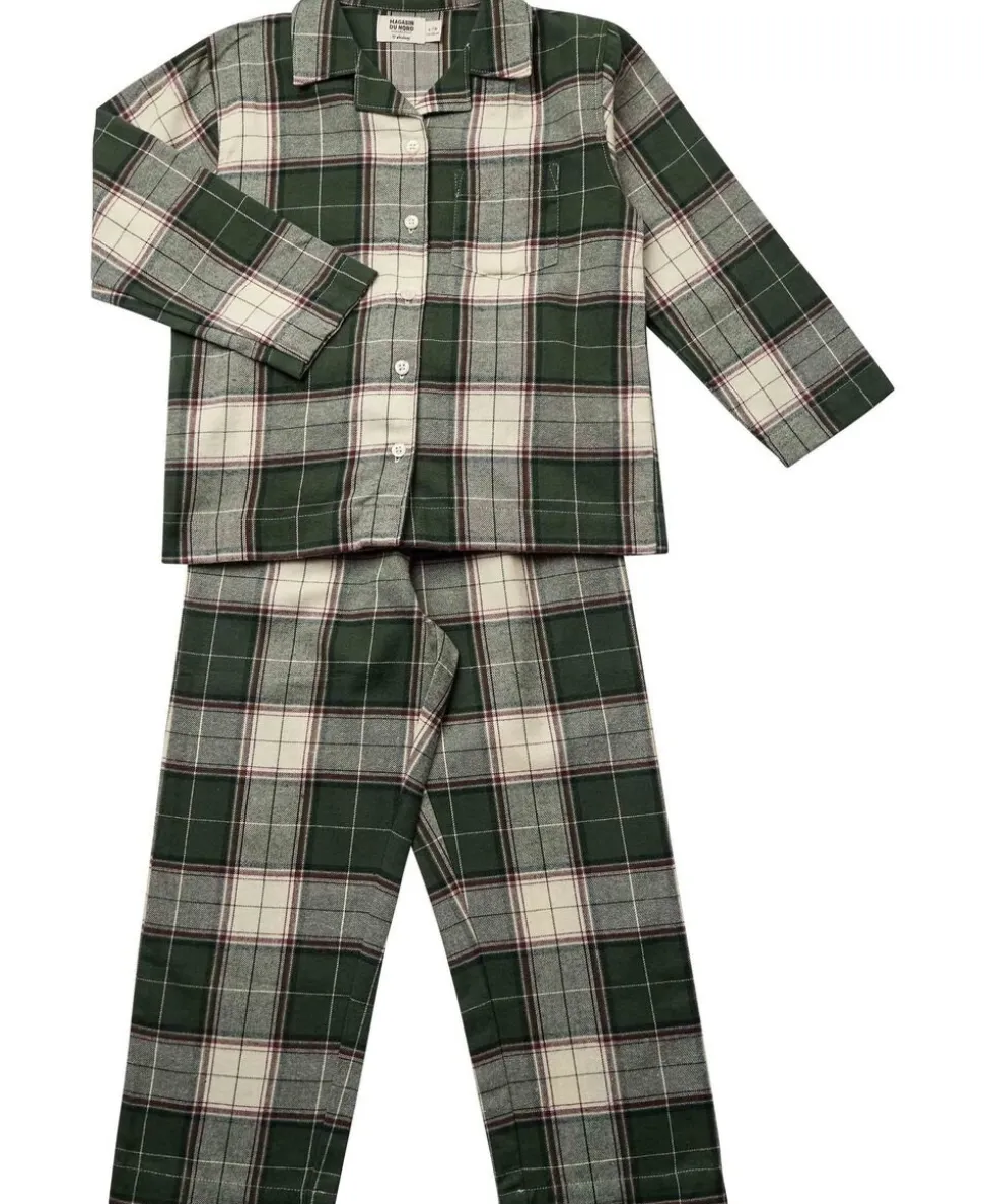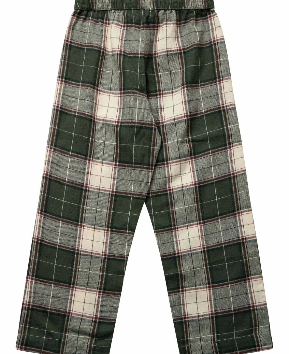 Pyjamas fra Magasin du Nord Collection i den blødeste kvalitet af 100% økologisk bomuld med GOTS-certificering. Sættet består af skjorte og bukser med det sødeste, ternede print. Derudover har skjorten en brystlomme, krave samt knaplukning på fronten. Bukserne har lige ben samt elastik og snøre i taljen. En skøn pyjamas i den lækreste kvalitet.