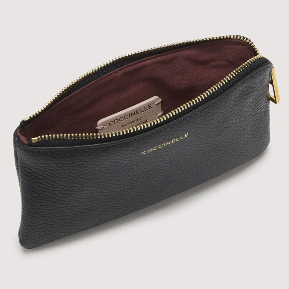Skøn clutch fra Coccinelle i den smukkeste læderkvalitet. Clutchen er enkel i modellen med ét rum med lynlåslukning samt en aftagelig rem. 3 små indvendige lommer til kreditkort. Derudover har clutchen mærkets navn på fronten, hvilket giver en flot effekt. En rigtig fin clutch i en skøn kvalitet. Dustbag medfølger.