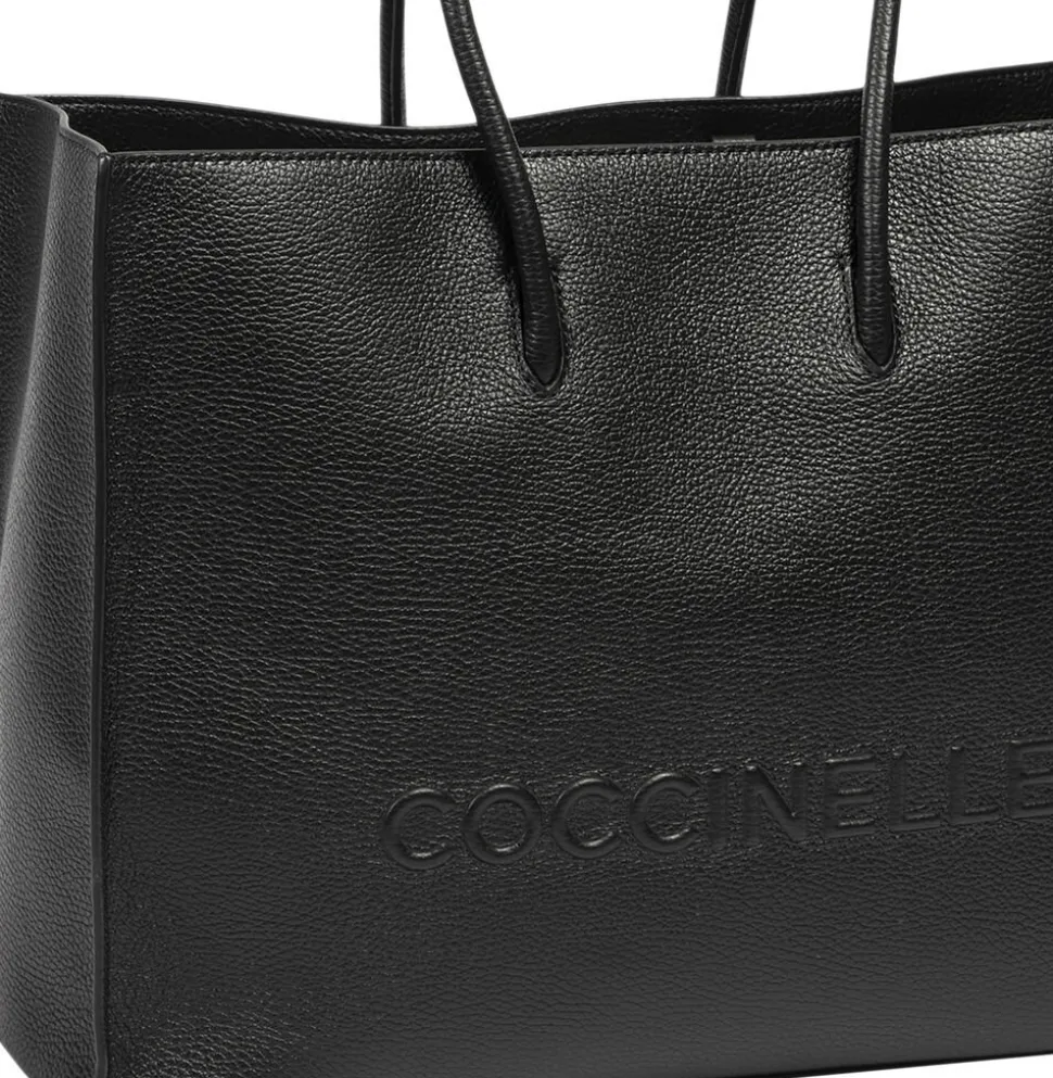 Lækker totebag fra Coccinelle i blødt skind. Tasken bæres i de 2 stærke hanke. I skindet er præget Coccinelle’s logo. Der er 4 indvendige lommer. Smuk taske med mange anvendelsesmuligheder.