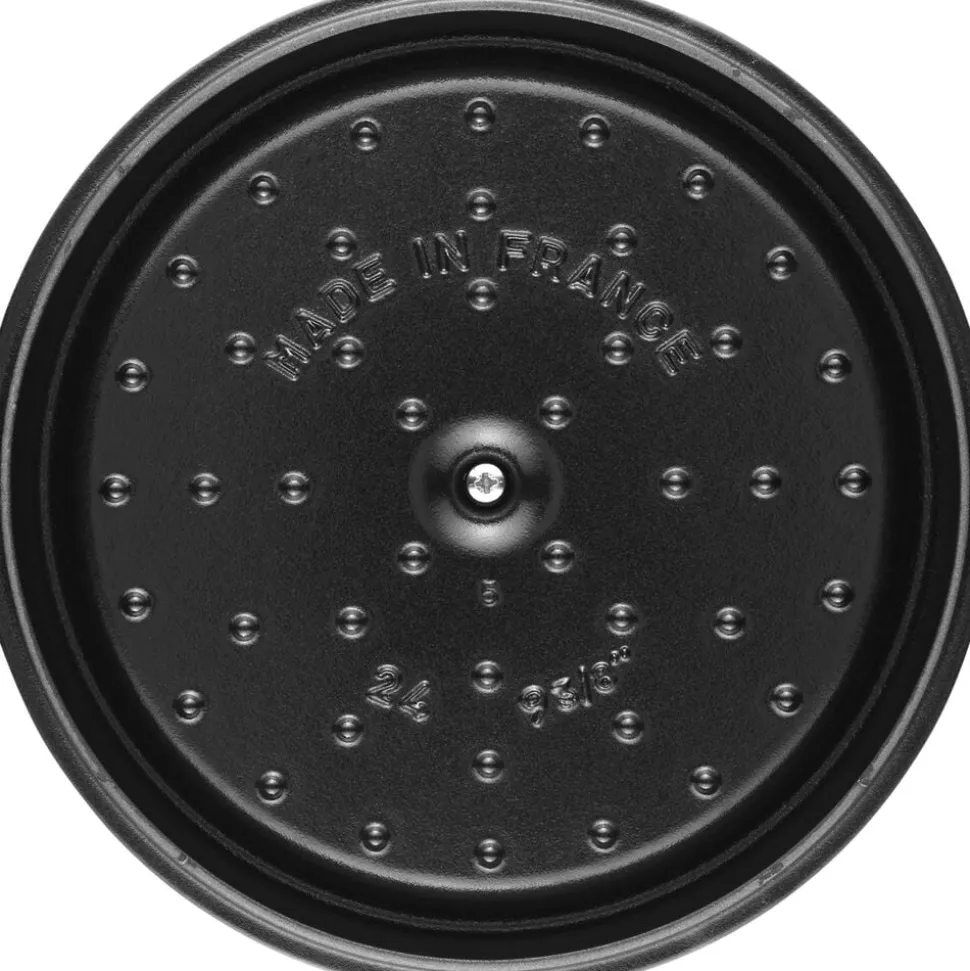 Gryden”” som La Cocotte betyder, er ideel til “”slow cooking””, nemme og lækre simreretter. Knopperne i det flade låg, samler den opståede kondens, som dernæst drypper ned på hele arealet af grydens bund, hvilket resulterer i at den tilberedte mad bliver mere mør og saftig. Denne effekt kaldes “”nedbørs-effekten””. Cocotten indeholder 3,8 L og passer til ca. 4 personer. Det smukke design pryder ethvert bord. Staub cocotten kan bruges på alle varmekilder inklusiv indkution, ovn og grill. Tåler op til 250 °C.