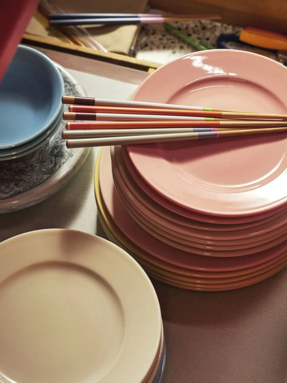 Colour Sticks er designet af Scholten & Baijings og er en moderne udgave af traditionelle asiatiske spisepinde. Med et farveblokeret Design i bambus og bøg fås spisepindene i en pakke med seks forskellige designs.