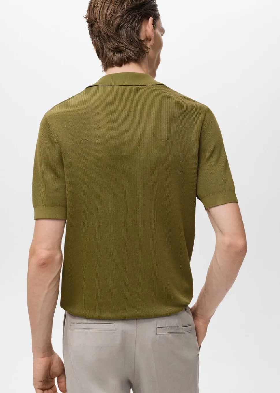Finstrikket stof, Bomuldsstof, Lige Design, Korte ærmer, Poloshirt med krave uden knapper, Ribbet krave, ærmer og kant, Model er 190 cm høj og bærer en størrelse M. INGEN TRANSLATION 64,5