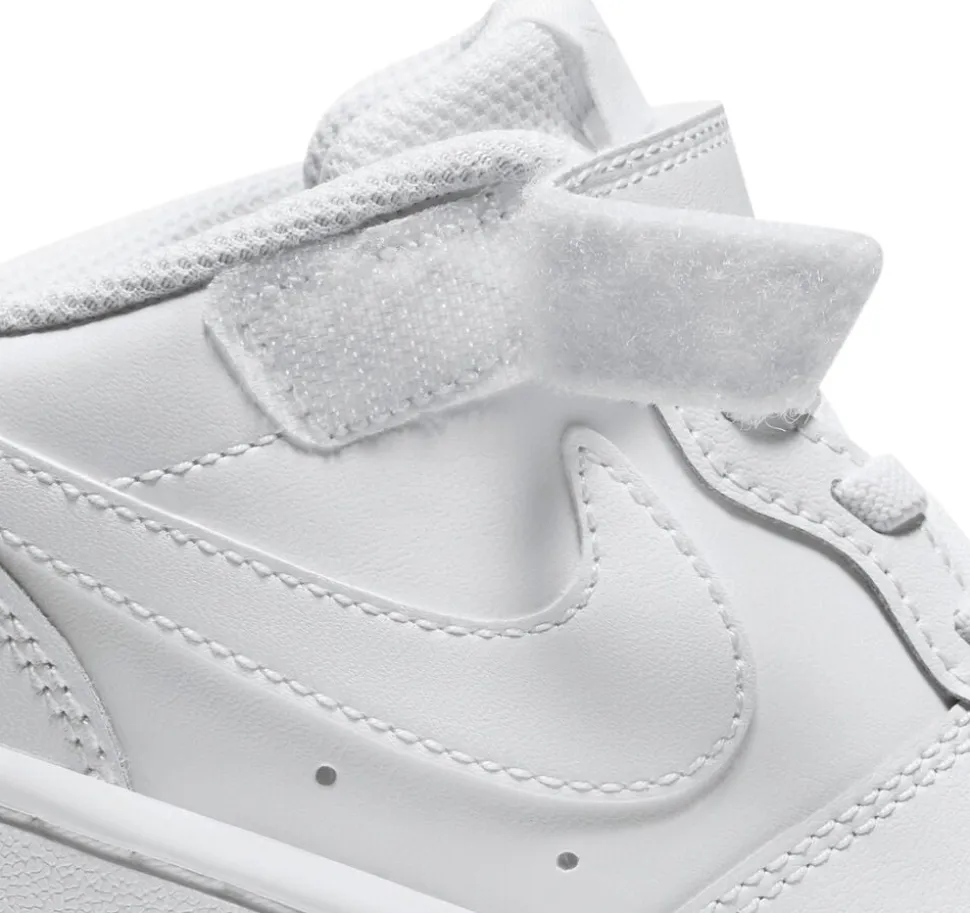 Nike Court Borough Low 2 har alle funktioner til, at dit barns fødder har det godt. Overdelen er i ren læder, så komforten spiller maksimalt, mens ydersålen i gummi yder solid slidstyrke. Derudover gør elastiske snørebånd og velcro til en leg at få skoene lynhurtigt af og på, så dit barn kan fortsætte dagen, hvor den slap.