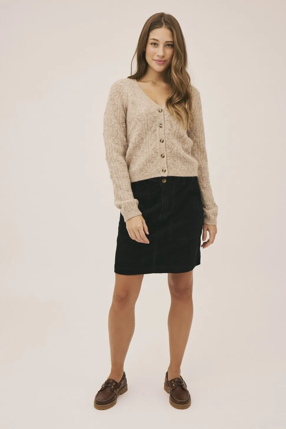 Nederdel fra Magasin du Nord Collection i den lækreste bomuldsfløjl. Nederdelen er enkel i modellen med knap- og lynlåslukning på fronten, sidelommer samt et elegant A-snit. En skøn nederdel i den lækreste kvalitet.