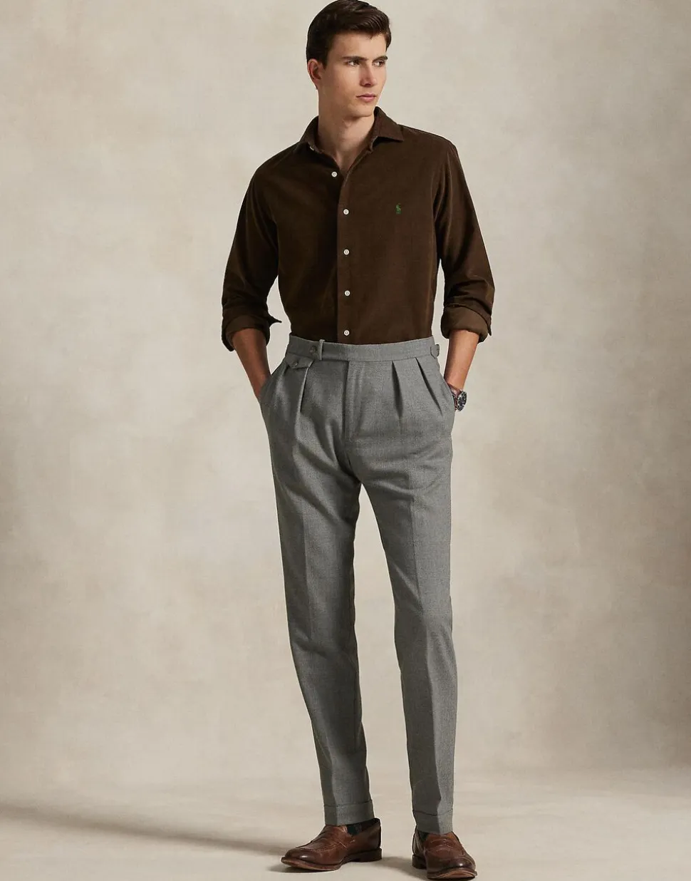 Pinwale bomuldsfløjl giver denne skjorte en raffineret rustikitet. På venstre bryst giver vores ikoniske broderede Pony den et signatur-finish-touch