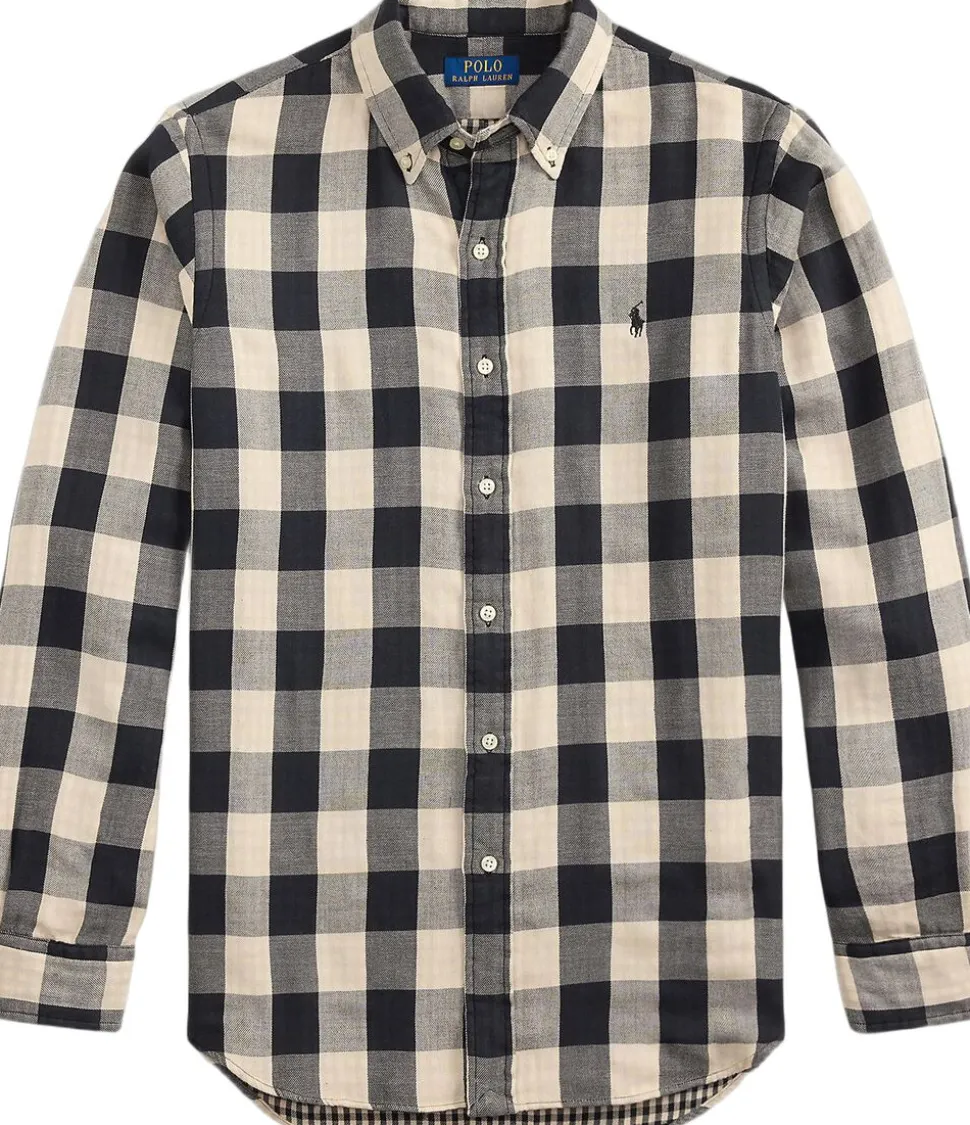 Denne ternede skjorte i dobbeltsidet bomuld har kontrasterende inderside, der er synlig, når ærmerne er rullet op