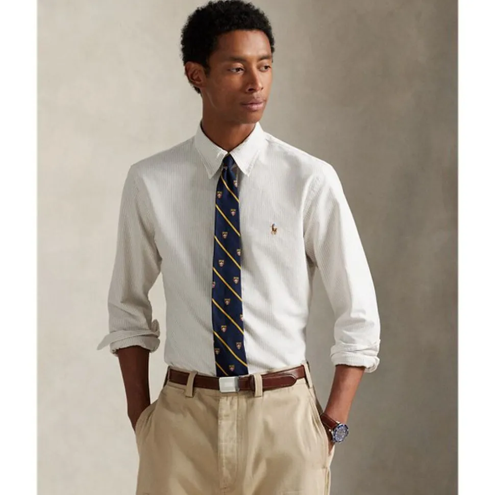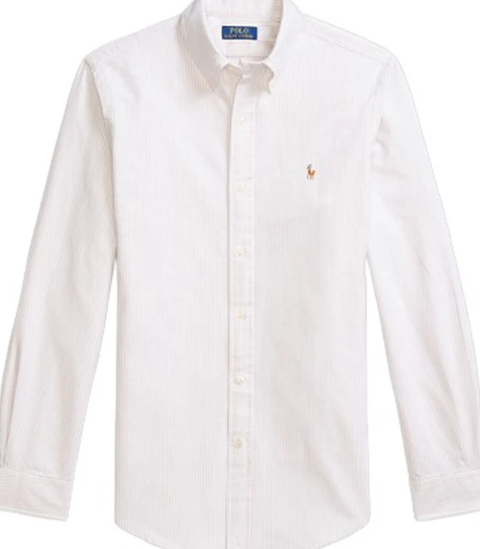 Oxford-skjorten fik tidligt sin debut i Ralph Laurens design, og siden da har den cementeret sin status som en grundsten i Polo-looket. I dag fortsætter Mr. Lauren med at skabe utallige variationer af hans ikoniske skjorte, herunder denne stribede version, der er broderet med vores flerfarvede signatur Pony