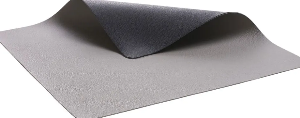 Vendbare dækkeservietter i praktisk vaskbart læderlook giver borddækningen et råt og moderne udtryk. Sort/grå.