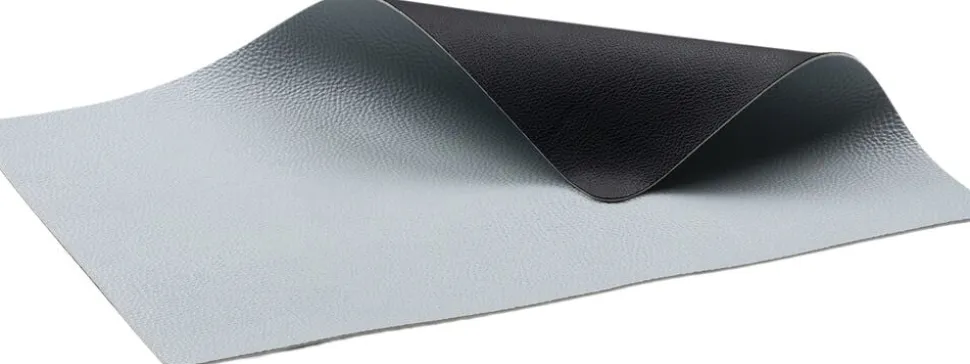 Vendbare dækkeservietter i praktisk vaskbart læderlook giver borddækningen et råt og moderne udtryk. Sort/Lyseblå.