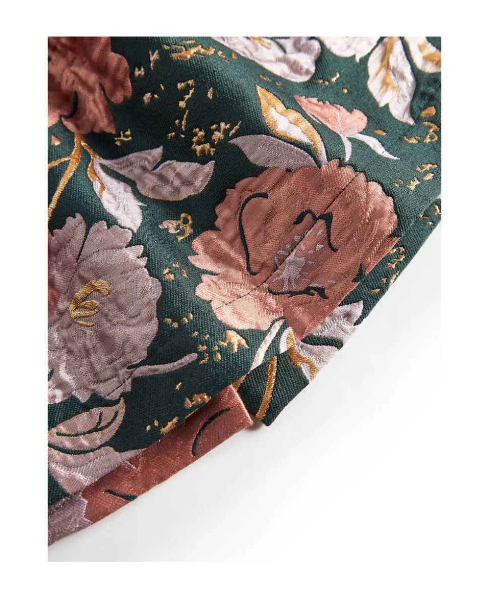 Kortærmet kjole til de små i en eksklusiv jacquard-vævet kvalitet med en elegant tekstur og et delikat blomstermønster. Kjolen lukkes med fine knapper bagpå, hvilket tilføjer et klassisk og raffineret touch samtidig med, at den er nem at tage af og på. Perfekt til både festlige lejligheder og særlige øjeblikke. Kjolens længde går til over knæet.