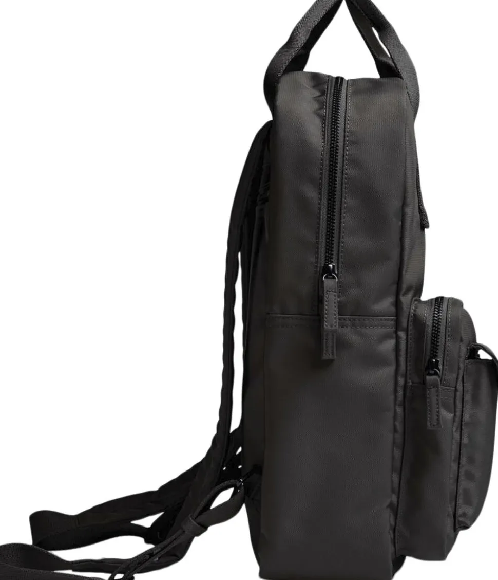 Darla Backpack Monochrome fra Markberg er en praktisk rygsæk fra vores populære Darla serie, som er produceret i 100% genanvendt polyester. Rygsækken er vandafvisende og lavet i et ekstra slidstærkt materiale. Rygsækken lukkes med lynlås og har en større samt to mindre lommer på fronten. Indvendigt har rygsækken en lille lynlåslomme og en større åben lomme, der kan anvendes til en computer. Derudover har rygsækken også en lynlåslomme bagpå. Markberg logoet på fronten er lavet i vegansk silikone, hvor der ikke er brugt animalske materialer. Tasken for er 100% genanvendt polyester. Mål: 27 cm x 38 cm x 12 cm