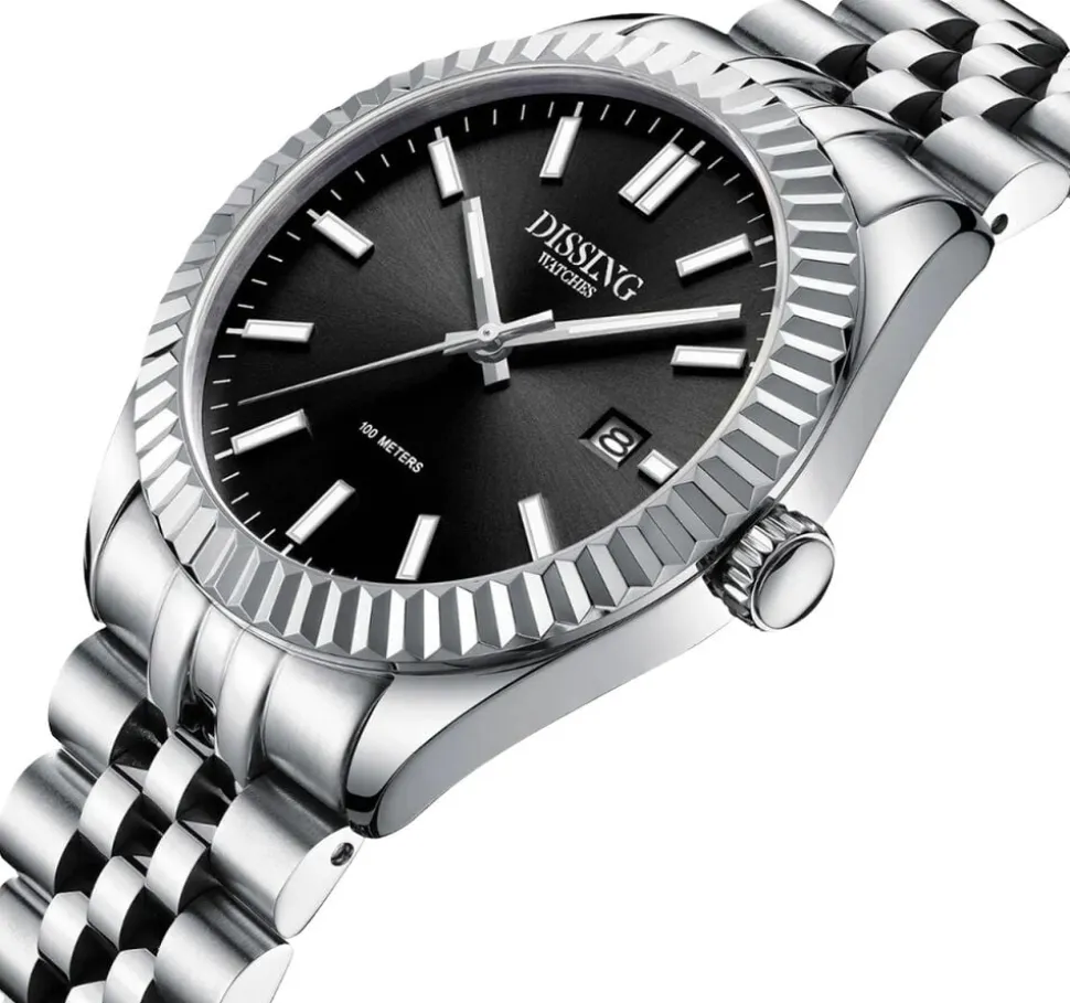 Dissing Date D1292 har en klassisk rund urkasse med en rillet bezel, der tilføjer tekstur til designet. Uret har en diameter på 41 mm, hvilket gør det behageligt at bære på håndleddet. Den sorte urskive er udstyret med tydelige visere og timemarkeringer, der sikrer nem læsbarhed. En datovisning er placeret til højre, hvilket tilføjer funktionalitet til det klassiske look. Uret er udstyret med et kvarts urværk drevet af Miyota 2315 kaliber.