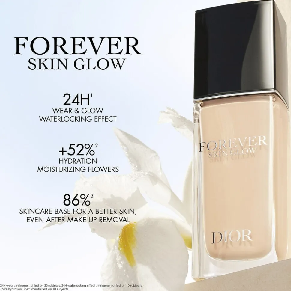 Denne nye generation af Diorskin Forever foundation er ren,** eftersom den er fremstillet af nøje udvalgte ingredienser. Beriget med blomsterekstrakter af iris, vild stedmoderblomst, hibiscus og nasturtium gør Dior Forever Skin Glow foundation din hud smukkere dag for dag.
