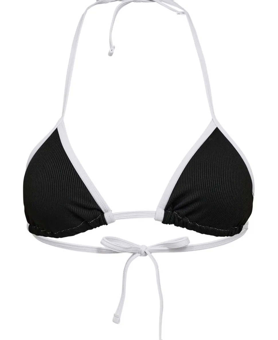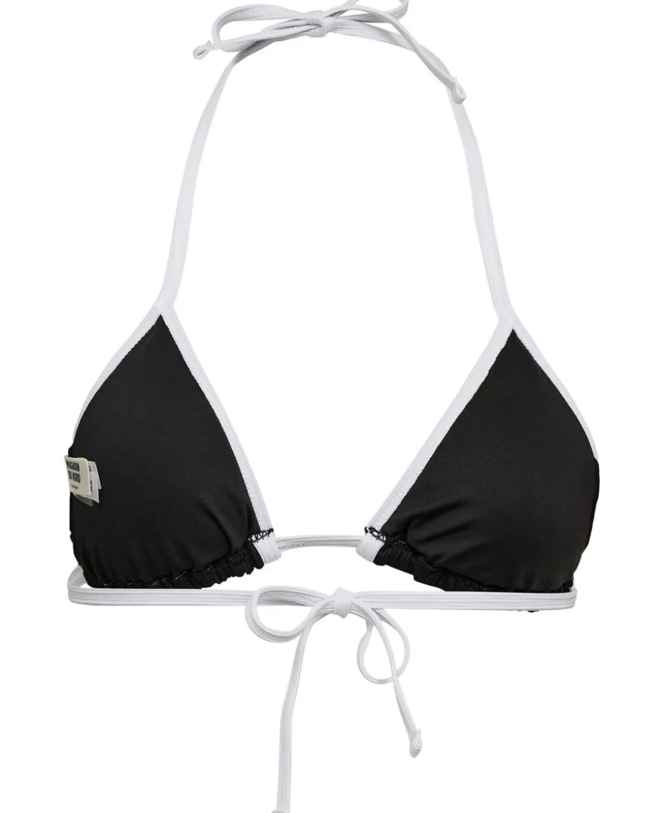 Bikinioverdel fra Magasin du Nord Collection i en blød kvalitet med en flot, stribet struktur. Overdelen er enkel i modellen med smalle elastikkanter, trekantede skåle med udtagelige indlæg samt smalle bindebånd. En detalje, der giver en flot effekt.