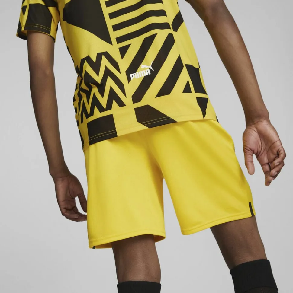 Puma Dortmund 22/23 spillershorts er designet til at levere ultimativ komfort og ydeevne på fodboldbanen. Disse shorts er en del af Borussia Dortmunds officielle 22/23 spillersæt og er skabt til at imødekomme behovene hos ambitiøse fodboldspillere. De er lavet af let og åndbart materiale, der holder dig kølig og komfortabel under hele kampen. Den elastiske linning og justerbare snøre sikrer en perfekt pasform, mens den ergonomiske konstruktion giver dig fuld bevægelsesfrihed. Puma Dortmund 22/23 spillershorts har det klassiske Dortmund-design med klubbens emblem og Puma-logoet, så du kan vise din støtte til dit yndlingshold med stolthed.