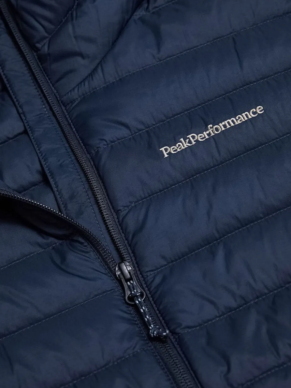 Peak Performance Down Liner Hood Jacket Ultralet og pakkbar dunjakke perfekt til by og friluft. Fyldt med 80% andedun og 20% fjer for optimal varmeisolering uden vægt. Shell af genbrug polyamid med vandafvisende behandling holder dig tør. Smarte detaljer: * Elastisk binding ved hæm og manchetter * Lynlåsbar brystlomme og håndlommer * Stand-up krave med hætte Ideal som selvstændig jakke på milde dage eller isolerende mellemlag under skalljakke. Slank pasform uden klumpethed. Vægt: 580g. Maskinvaskbar. Designet for performance uden kompromis.