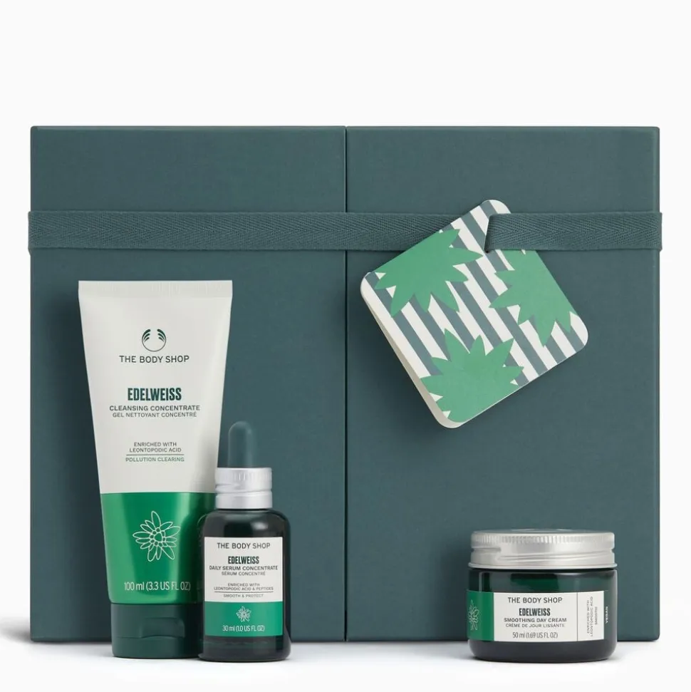 Brug vores Edelweiss Cleanser til at vaske dit ansigt, følg op med vores fugtgivende Edelweiss Concentrate, og fuldend den hudvenlige rutine ved at fugte med vores Edelweiss dagcreme.