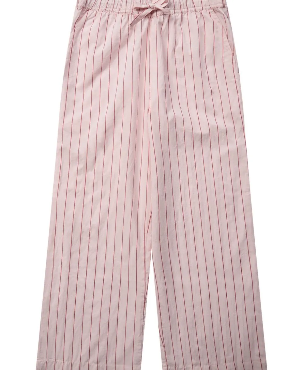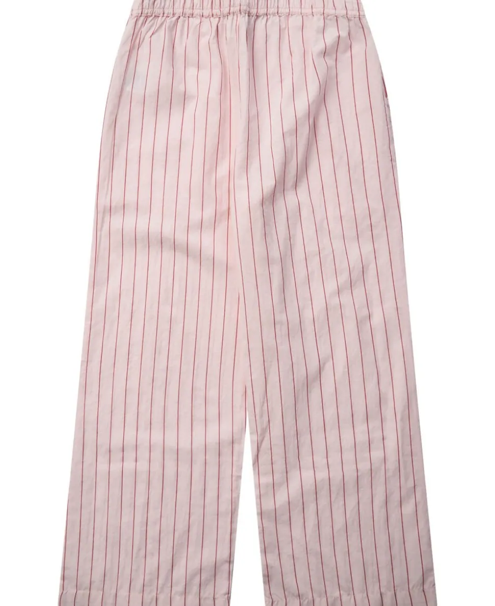 Bukser fra Magasin du Nord Collection i den blødeste kvalitet af 100% økologisk bomuld med GOTS-certificering. Bukserne er enkle i modellen med det fineste, stribede print, elastik i taljen, et dekorativt bindebånd, sidelommer samt lige bukseben med en løs pasform. Et par søde bukser i en lækker kvalitet.