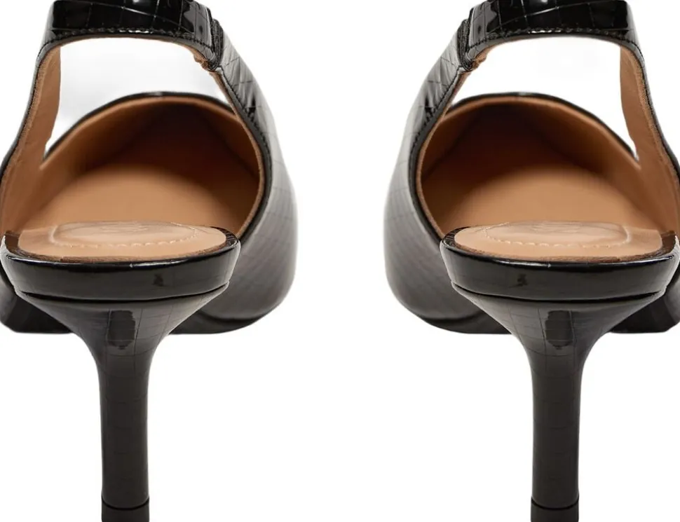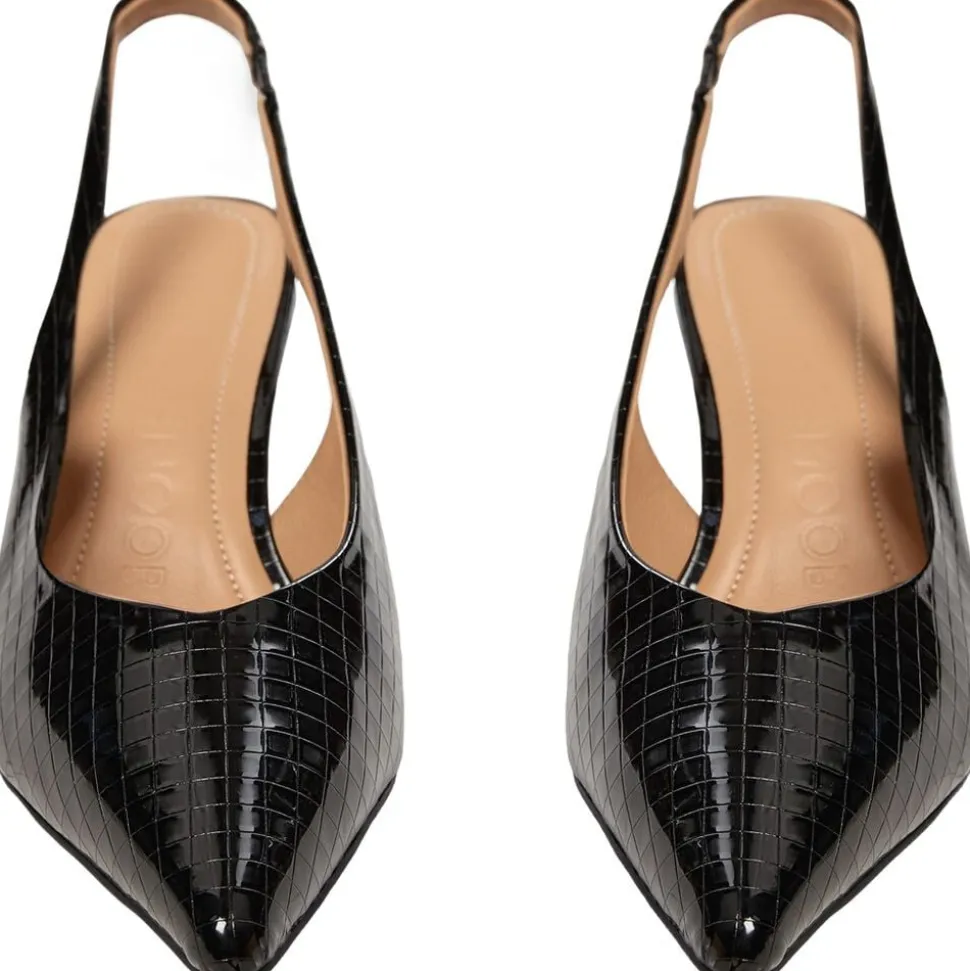 • Slingback-stilet • Spids tå • Blank overflade med ternet prægning • Elastisk rem bagpå • 7 cm høj hæl • 100 % læder, 100 % gummi