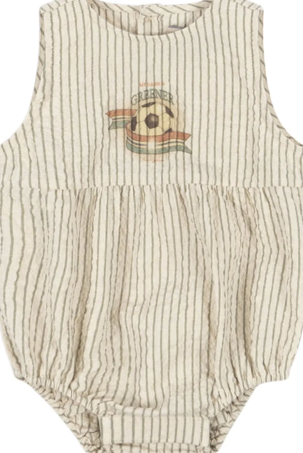 Romper fremstillet i blødt seersucker-stof. Praktisk Design med trykknapper ved benåbninger, der gør det nemmere at klæde din baby på. Materialer – 98 % økologisk bomuld, 2 % elastan GOTS, økologisk, certificeret af CU1094701
