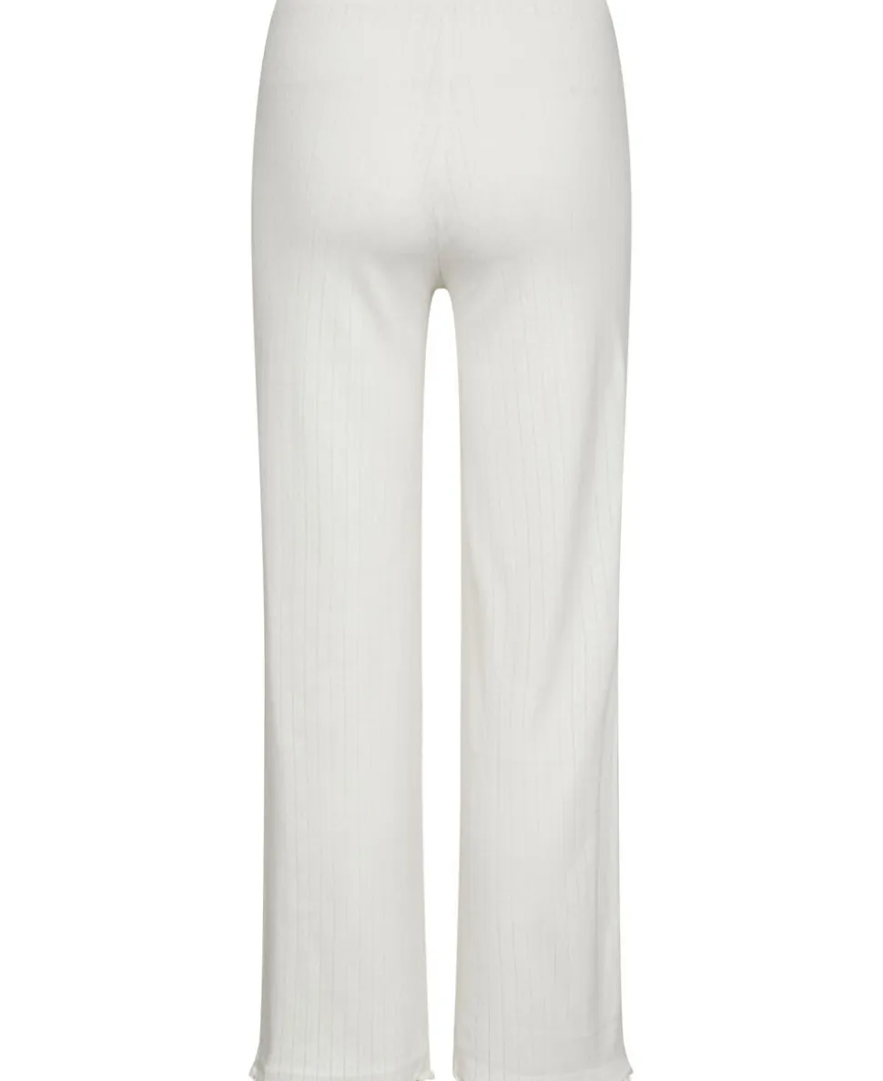 Bukser fra Magasin du Nord Collection i den blødeste kvalitet af 100% økologisk bomuld med GOTS-certificering. Bukserne er enkle i modellen med det fineste hulmønster, sløjfedetalje, bølgekant i bunden samt en smal elastik i taljen. Et par komfortable bukser i den lækreste kvalitet.