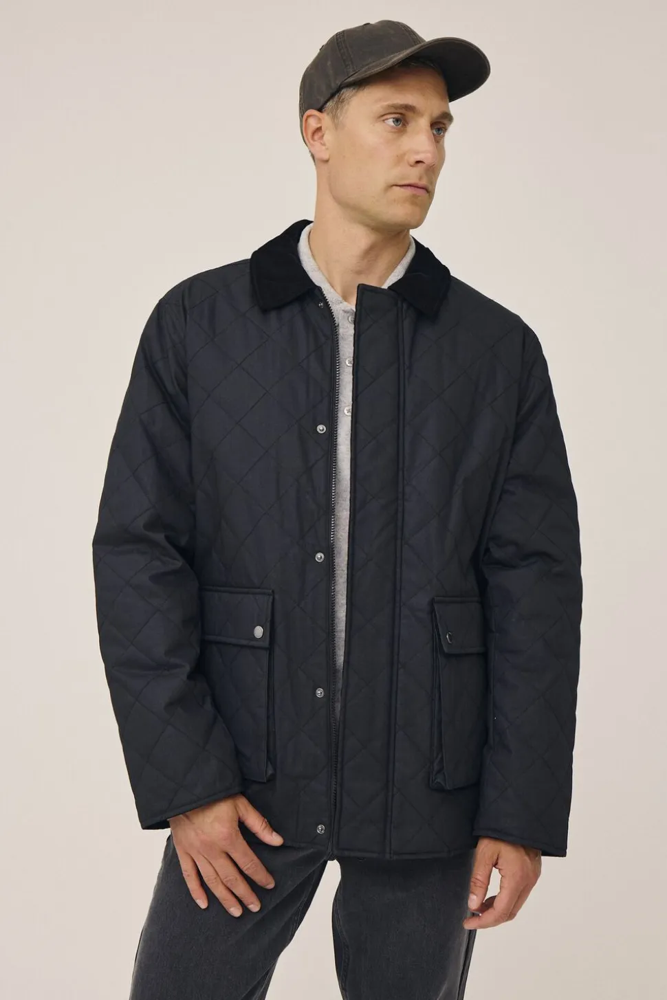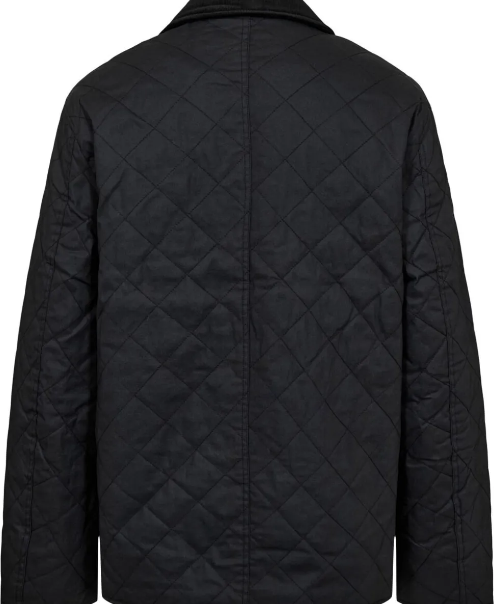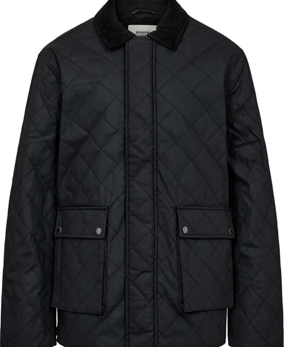 Jakke fra Magasin du Nord Collection i den lækreste kvalitet af 50% genanvendte fibre med GRS-certificering. Jakken er enkel i modellen med en coated overflade, frontlommer, et quiltet for, lange ærmer, en kravefold af fløjl, en skjult knaplukning samt en lige pasform. En skøn jakke i en lækker kvalitet.