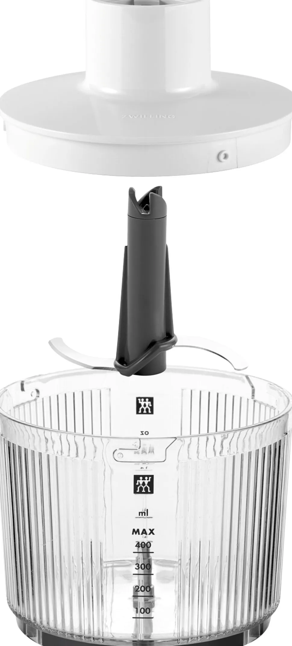 Tilbehørsdel til ZWILLING ENFINIGY stavblender med 9 hastighedsindstillinger og 800 watt motor. Perfekt til at hakke løg, nødder, ost og lave pestoer og cremer Hakker hurtigt og effektivt, og kniven tæt ved bunden sørger for alt bliver hakket. Klingen er af rustfrit stål, andre dele er af BPA-fri plast. Max volumen 400 ml.