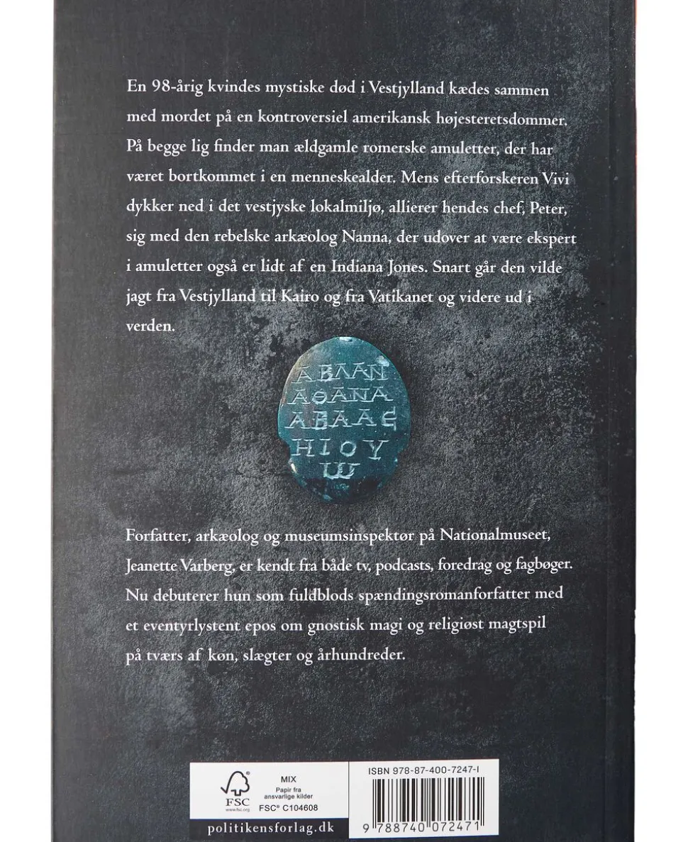 Vicepolitiinspektør Peter Iversen, der er forflyttet fra København til Vestjylland, bliver sat på sagen. Mens han er på stedet, falder en lille sort amulet med ukendt skrift ud af fru Jensens hånd. Nationalmuseet bliver involveret, og Peter møder Bill Perez fra FBI, som efterforsker mordet på den amerikanske højesteretsdommer Elisabeth Moore Jackson. I Jacksons mund har man fundet en kugle, der ligner amuletten i fru Jensens hånd. Begge dele ser ud til at være en del af en historisk samling, der forsvandt i 1933.