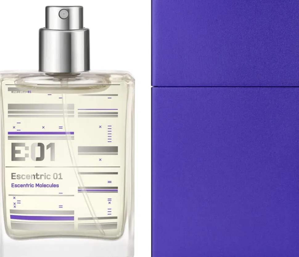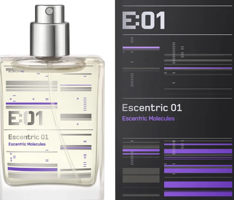 Escentric 01 TRAVEL edition er højt koncentreret med hele 65% Iso E Super sammen med bl.a. pink peber og grøn lime i en ny balanceret form. Hellere end den traditionelle duftformel af top, – hjerte – og bund noter, bevæger Escentric 01 sig hurtigt fra top til bund og bliver længere i den basale duftnote, som skifter imellem sanselige og varme træagtige duftnoter. Det er som om at Escentric 01 intet hjerte har, men en enorm sjæl! Næsen bag duften, Geza Schoen har skabt Escentric MoleculeS sammen med Londons branding eksperter fra ThisCompany. Inspireret af duftens sanselige og naturvidenskabelige natur, resulterede designet i matematiske binære koder og molekylær grafik.