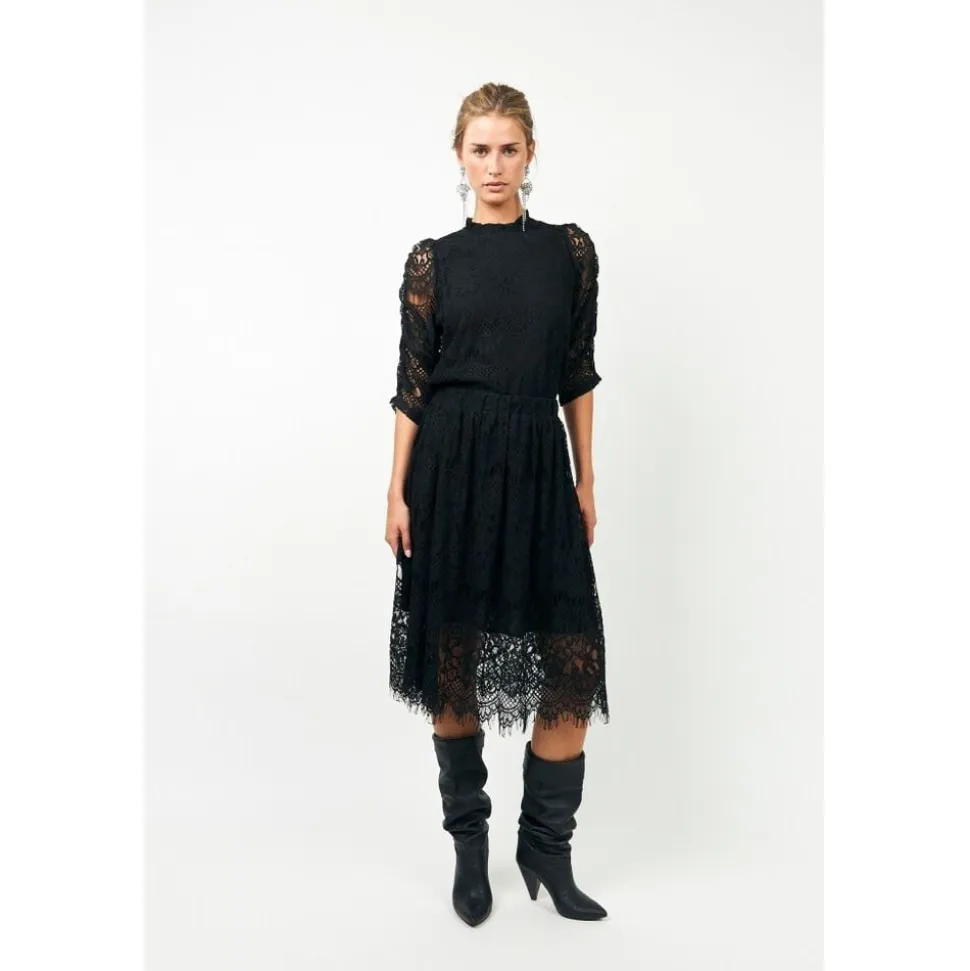 EverLL-nederdelen er tilbage i klassisk sort blonde. Den er fremstillet af delikate blomsterblonder med en takket kant og har et blødt for for komfort. Den elastiske linning sikrer en behagelig pasform, mens de let gennemsigtige blonder i sømmen giver et feminint og luftigt touch. Style den med vores matchende LilouLL top for et Exclusive sæt, eller sæt den sammen med en enkel strik eller skjorte for et mere afslappet look.