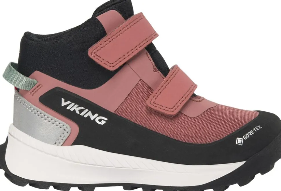 Hjælp dit barn med at sætte det lange ben foran med Expower Mid GTX 2V, Vikings bedste børnehavesko, der er propfyldt med førsteklasses funktioner og genbrugsmaterialer. For eksempel vil den vandtætte GORE-TEX membran uden PFAS, holde fødderne behagelige og tørre under våde forhold, og den forstærket overdel fremstillet af et slidstærkt og holdbart materiale, forsynet med store reflekterende detaljer give bedre synlighed. I ydersålen af gummi giver en rille mulighed for at holde flyverdragten på plads, mens Vikings Ultimate Grip Concept giver et uovertruffent greb på alle overflader.