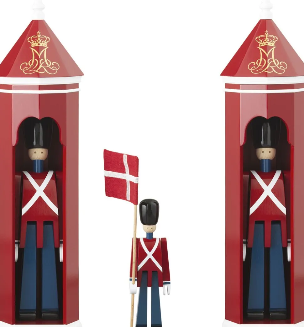 Inspireret af et af Danmarks nationalsymboler fra Amalienborg Slotsplads skabte Kay Bojesen i 1942 sine håndmalede gardere. Lige siden har Fanebæreren været en kær gæst på fødselsdagsmorgenbordet og et designikon i boligen. Den populære garder fra Kay Bojesen har fået en lille ny størrelse og er udstyret med et lækkert tekstilflag i bomuld. Den flotte garder er skabt i malet bøgetræ. En god gaveide for livet til både børn og voksne.