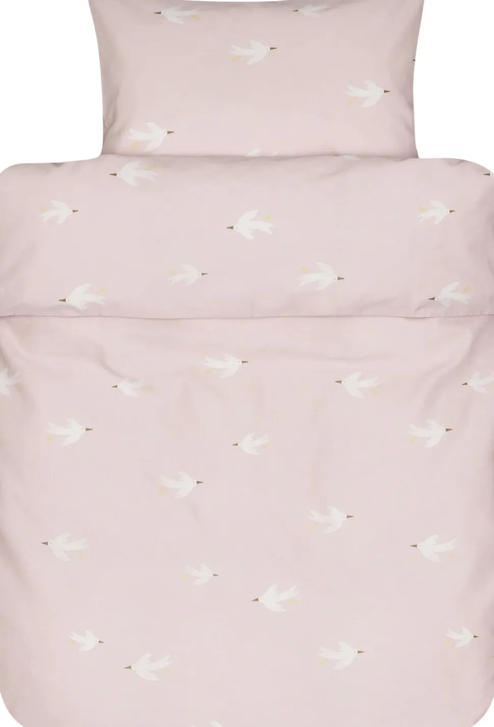 Høie Fina, sengesæt i Høies 100% bomuld, en ekstra fin lærredsvævning, som i tillæg er Svanemærket. Det søde dessin med små fugle giver en hyggelig og stille atmosfære på børneværelset. Farverne er neutrale og passer godt sammen med de flestes interiør stil. Vi har valgt en bomuld, der er kendt for sin renhed og store slidstyrke. De ekstra fine bomuldstråde føles bløde og behagelige mod huden. Sengesættet er behandlet med Easy Care, som gør at det krøller mindre og holder sig fint længere. Bundåbning med lynlås i dynebetræk. Oeko-Tex Made in Green certificeret.