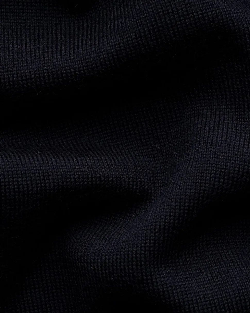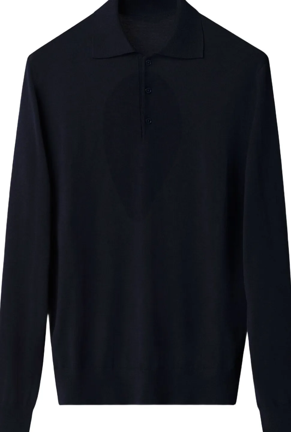 En polotrøje fremstillet af 100 % ekstra fin merinould, strikket i 14 gauge maskesting af traditionsrige strikkere i Italien. Den er designet med en struktureret strikket krave og manchetter og afsluttet med perlemorsknapper og har en glat finish og letvægtsfølelse – en raffineret strik, der er ideel til afslappet påklædning og smarte lag på lag.