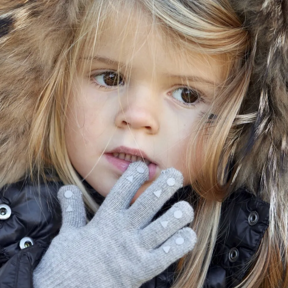 GoBabyGo fingervanter med gummidutter på indersiden af fingrene som gør det lettere at lege, gribe and holde fast på ting når barnet leger udendørs. Slip fingrene løs og styrk barnets finmotorikFordele:Styrker barnets fin motorik, da barnet kan bruge fingrene når det leger udenforLavet i blødt bomuldsstræk med en bred ribkant, som gør dem nemmere for barnet selv at tage dem på. Giver bedre bevægelighed og komfort. Testet og godkendt for sundhedsskadelige stofferDansk design produceret i Europa og Oeko-tex Standard 100 CertificeretProduktinformation Materiale: 75% bomuld, 20% Polyamid, 5% Elastan Størrelser: 1-2år, 2-3år &: 3-4årDe skridsikre gummidutter er lavet af silikone og er fri for ftalater Vask på vrangen