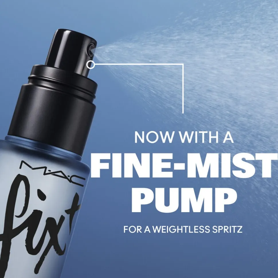 – Til ansigtsprodukter, påfør din foretrukne pudderfoundation og spray let over hele ansigtet for at fiksere og fugte.