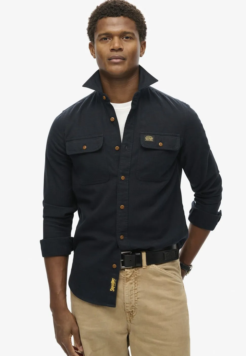 Klassisk arbejdstøjsstil er hårdfør og funktionel, og vi har omfavnet den robusthed i generationer, hvilket gør den til et ikon for vores arv. Kanaliser den ånd, der opbyggede vesten, og opnå et pålideligt look med vores Trailsman flannelskjorte, som ubesværet tilføjer autentisk stil til din basisgarderobe. Tilsætter du jeans og støvler, får du et øjeblikkeligt look og et pålideligt fashion statement. Afslappet pasform den klassiske Superdry-pasform. Ikke for tætsiddende, ikke for løs, helt perfekt. Vælg din normale størrelse. Bomuldsflannel, twill-vævet. Standardkrave. Knaplukning. Lange ærmer. Knapmanchetter. To knaplommer på brystet. Vintage Superdry-mærke. Superdry-signaturmærke.