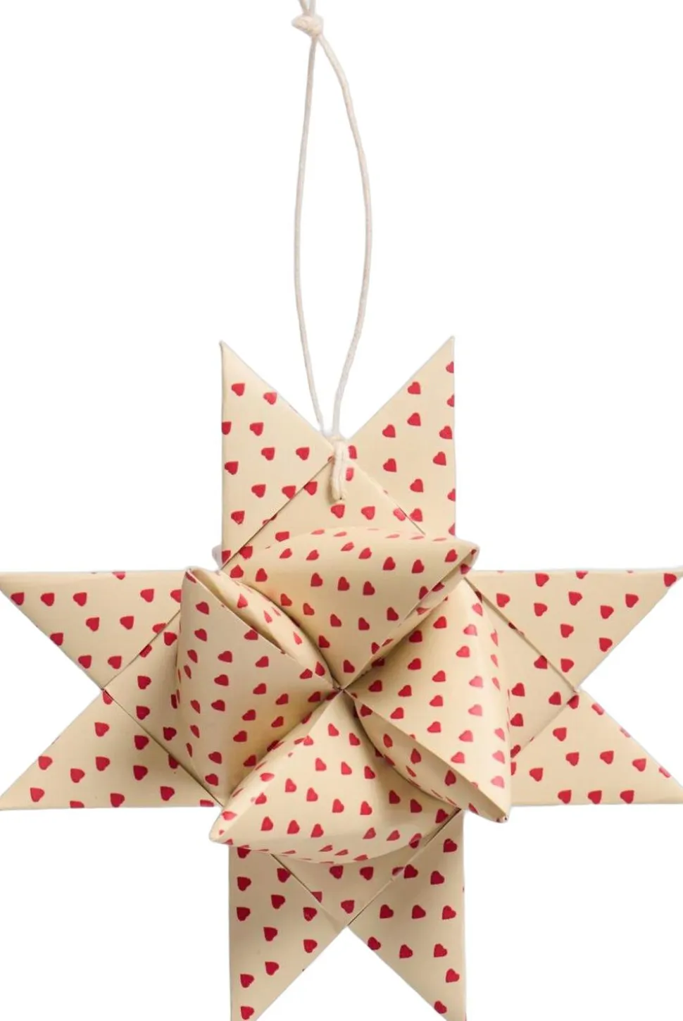 Flettet stjerne t/ophæng lille m/røde hjerter