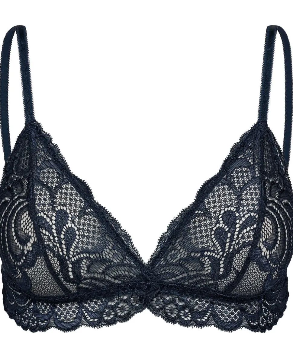 BH fra Magasin du Nord Collection i en smuk blondekvalitet. BH’en er enkel i modellen med trekantede skåle, smalle, justerbare skulderstropper, hægtelukning på ryggen samt en smal elastikkant under skålene. En skøn BH i den lækreste kvalitet. Se også de andre fine styles i Fleur-serien.