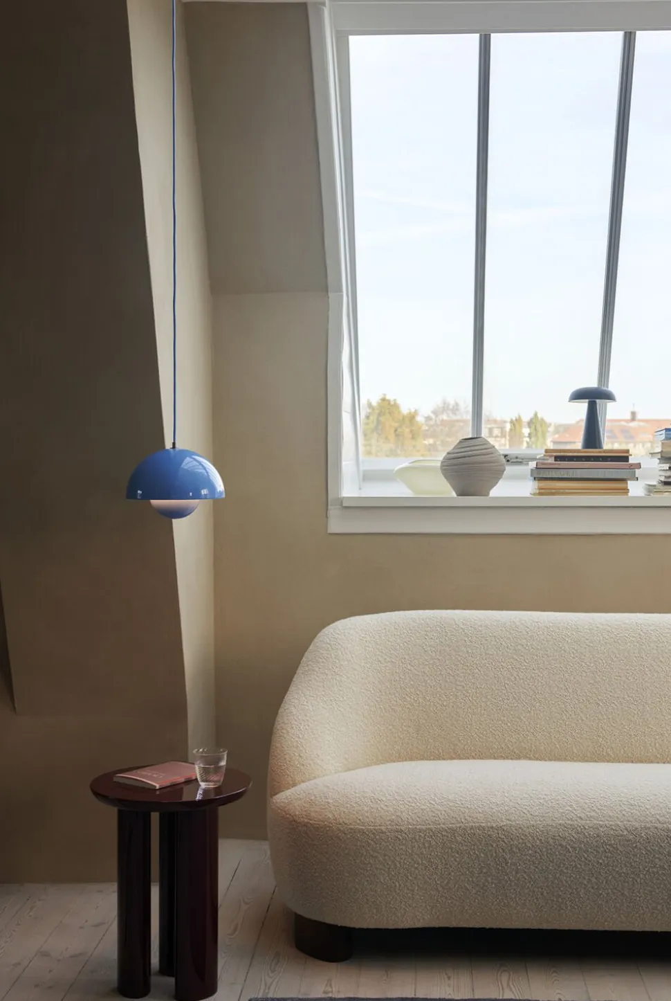 Flowerpot VP1 er fra &Tradition, og designet af Verner Panton i 1968, som fandt inspiration til lampeserien i 60’ernes og 70’ernes Flower Power revolution.