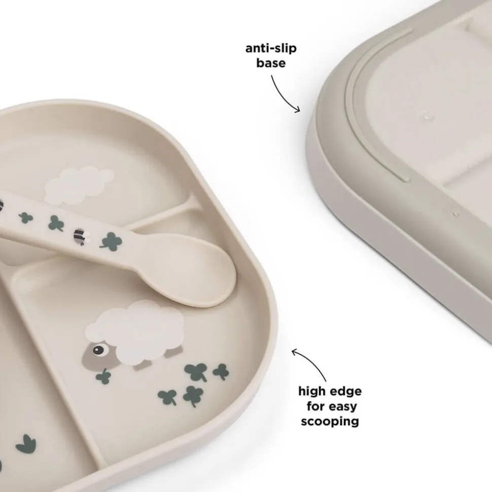 En praktisk antiskrid-base sikrer, at tallerkenen bliver på sin plads under måltidet