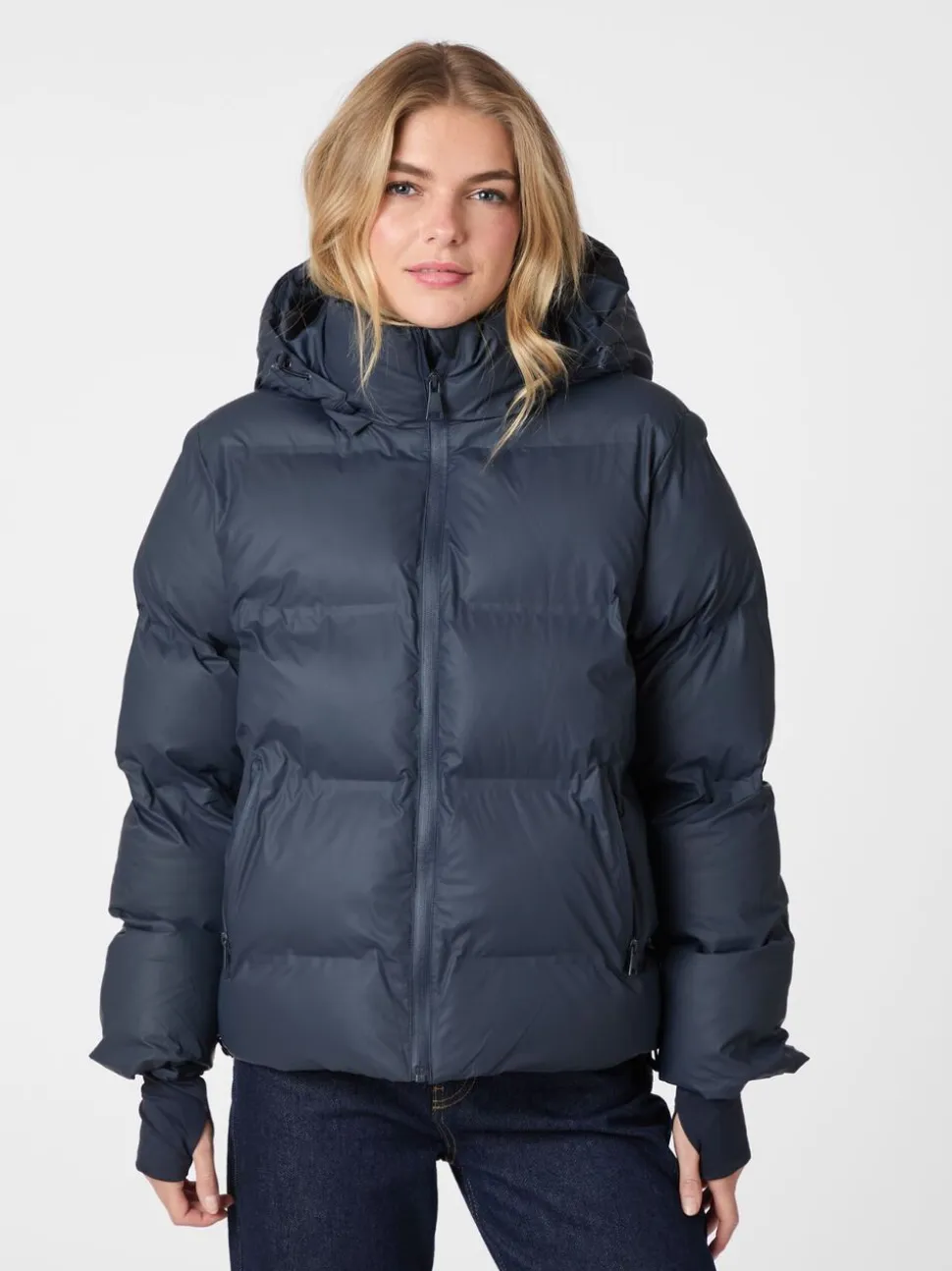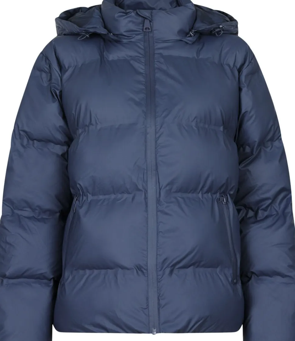 Cool vatteret jakke som er regnafvisende. Kvaliteten er blød og mat og giver et fedt look. Jakken er kort og har aftagelig hætte og justerbar vidde forneden. Modellen er 176cm og bærer en størrelse 36.