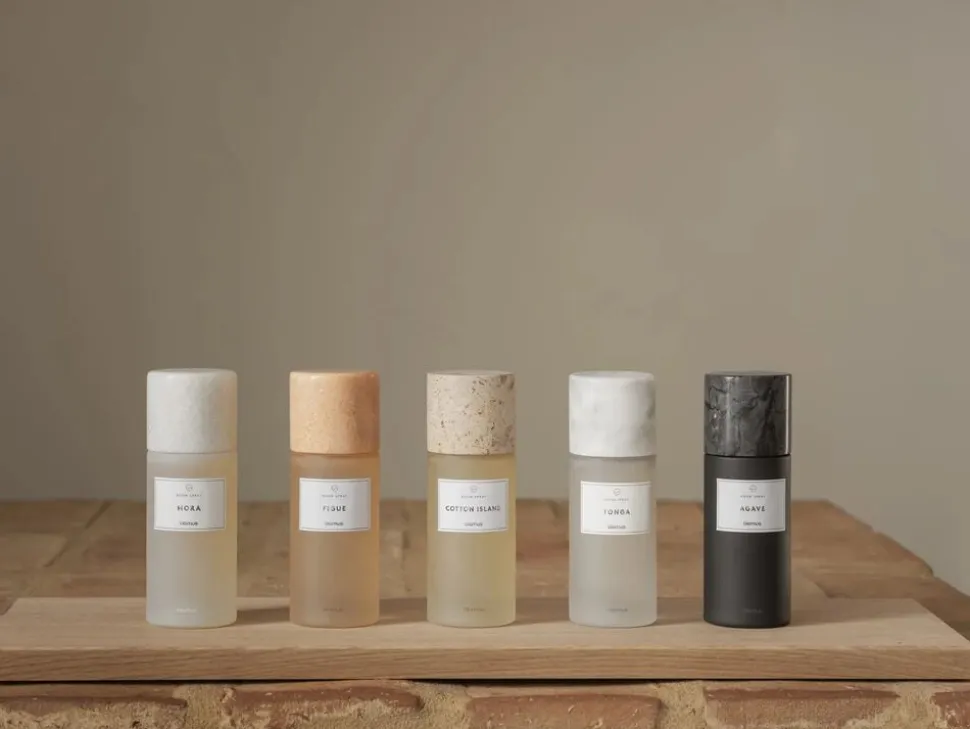 With the FRABLI room spray, you can distribute the pleasant and refreshing fragrances of the scented candles of the same name in your home. Not only the fragrance compositions but also the design of the sprays with the elegant marble and travertine lids are the perfect match for the candles and are the ideal accessory for your bathroom or living room. Together, the products of the FRABLI line can create a beautiful atmosphere and fill your rooms with fragrances. The fragrances are water-based. The filling contains 100 ml. Cotton Island: The light breeze takes us away and makes us dream of a holiday by the sea. The sweet scent of lily of the valley is rounded off with a squeeze of lemon and a shade of white musk. This way a wonderfully sweet and herbal fragrance arises, that makes us think of freedom and purity. Available in further colours and scents.