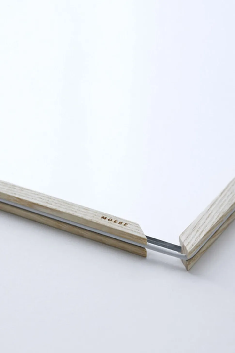 Frame consists of two pieces of acrylic glass, four lists made of either ash or aluminium and a rubber band.
