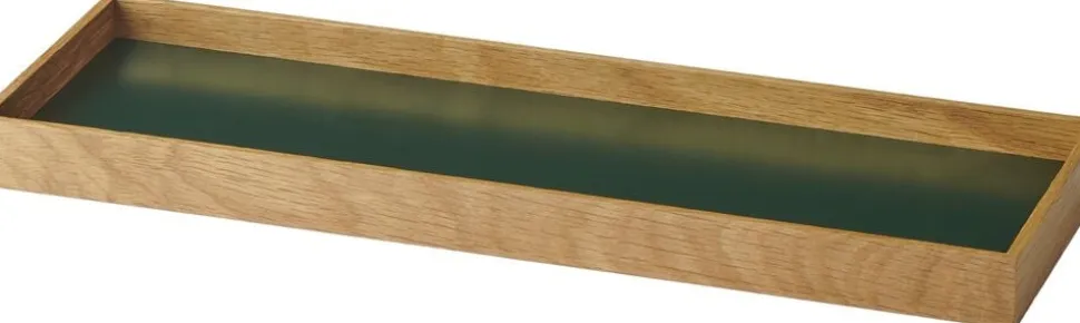 Frame er blevet genlanceret med tre nye farver, herunder en smuk grå, en forførende grøn og en elegant nude. For at tilføje endnu mere variation inkluderer kollektionen også muligheden for at vælge mellem en eksklusiv egetræskant og en i røget eg. De tre forskellige størrelser gør det muligtat vælge den ideelle Frame til ethvertbehov, uanset om det er til udstilling af genstande eller som en praktisk serveringsbakke.