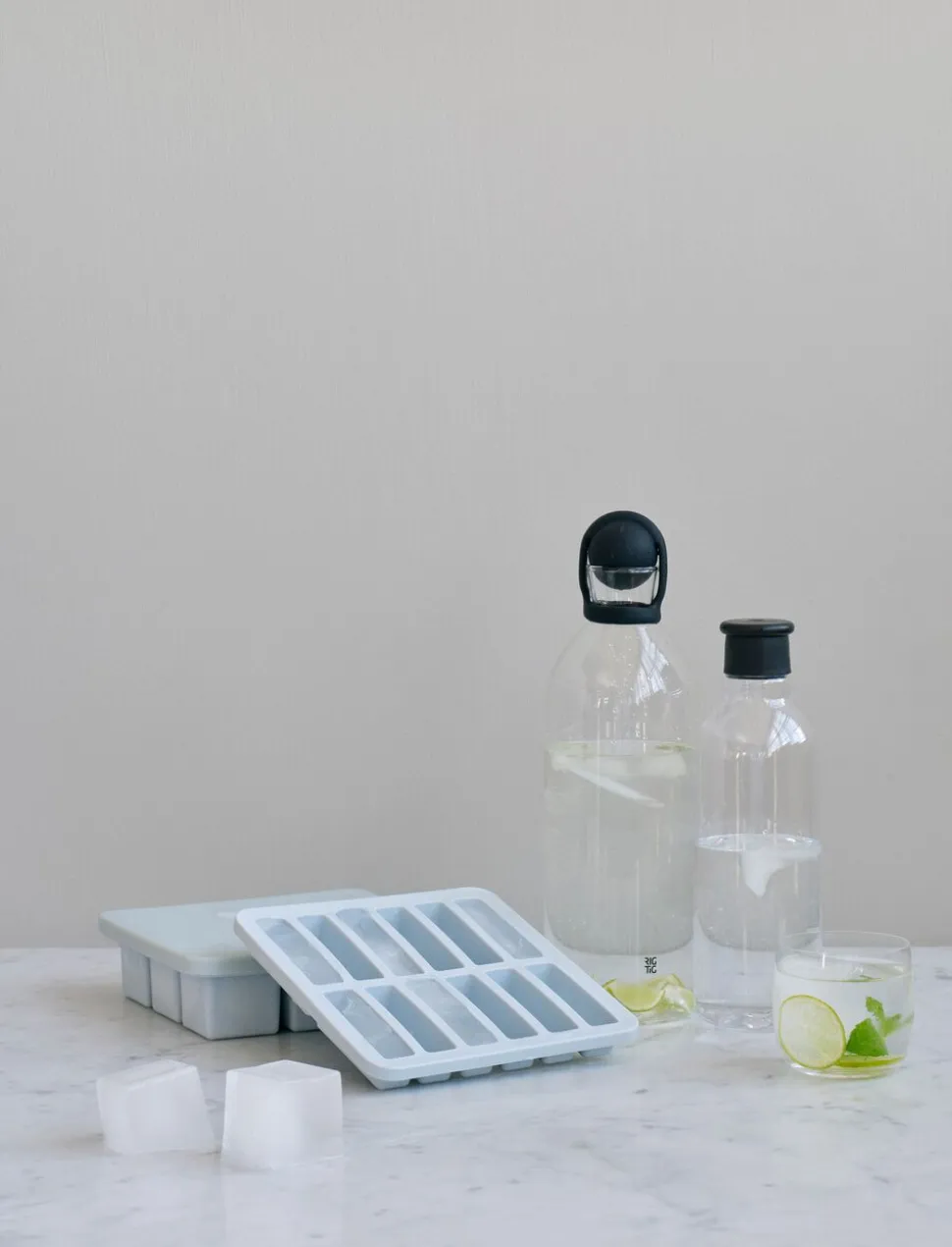 Den lille isterningbakke FREEZE-IT støber i rektangulære forme, ideelt til drikkeflasker eller serveringskander med smalle flaskehalse. For at gøre serveringen mere indbydende for både børn og voksne, kan man let sætte sit personlige præg på isterningerne, ved at tilføje alt fra frugtstykker, limeskiver eller mynteblade, spiselige blomster til naturlig frugtfarve.
