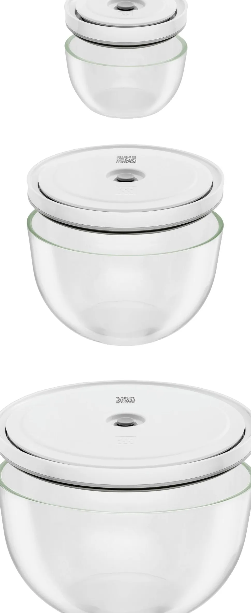 Det innovative vakuumsystem til dit køkken: ZWILLING FRESH & SAVE BOWLS det revolutionerende vakuumsystem til tilberedning, servering og opbevaring. De tre glasskåle er ideelle til at tilberede og servere små lækkerier som f.eks. overnight oats eller større salater og buddha bowls direkte i skålen. Eller at vakuumpakke maden og derefter opbevare den i køleskabet eller fryseren. Det er hurtigt og nemt takket være vakuumlågene, og dine retter holder sig friske op til fem gange længere*. Og fordi lågene også passer til dine STAUB keramikskåle (12, 18, 24 cm, uden greb), er du endnu mere alsidig. En anden fordel ved lågene: Med dem kan du nemt stable dine skåle uden forstyrrende folie.