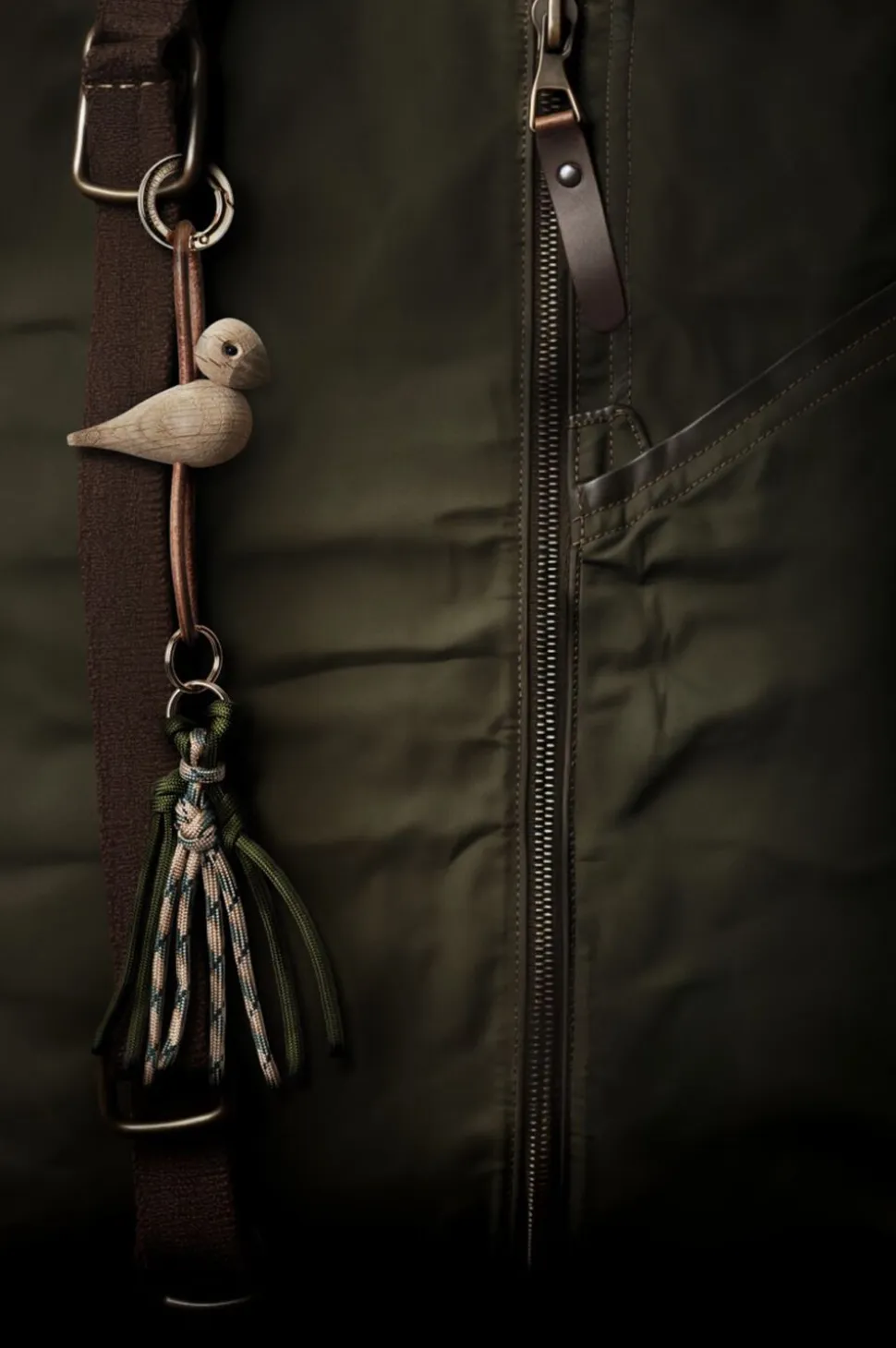 Tag Kay Bojesens elskede klassikere og din kærlighed til originalt dansk design med dig overalt. På tasken. I bæltet. Eller til bilnøglen. Med en smart og dekorativ nøglering fra Kay Bojesen Denmark kan du enkelt og stilfuldt gøre hverdagen mere personlig og tage originalt dansk design med på farten, uanset om du hægter denne variant med den klassiske sangfugl eller den legendariske abe fast som din altid trofaste buddy. Kay Bojesen var en mester i at tilføje små detaljer til sine trædesigns. Han fandt magien i naturens eget materiale, og med sit enestående formgivningstalent voksede den ene forunderlige figur efter den anden frem i hans fantasi og tog form mellem hans hænder. To af hans største klassikere er uden tvivl aben og sangfuglen. Og selvom sangfuglen i denne nøgleringsudgave er nedskaleret i volumen til en højde på bare 4,5 cm, så får du stadig masser af Kay Bojesens designarv med dig, uanset hvor turen går hen. Denne Kay Bojesen-nøglering har sangfuglen i miniatureudgave skabt i FSC®-certificeret egetræ og kommer med en både æstetisk og smart naturfarvet snor i ægte læder, der kan flyttes op og ned i forhold til figuren, så du kan skabe dit helt eget udtryk. I toppen finder du en stor guldfarvet nøglering påtrykt Kay Bojesen Denmark, der ud over at være smukt dekoreret også er udstyret med en praktisk karabinhagefunktion, der let åbnes og lukkes, og i bunden under figuren hænger tre ekstra nøgleringe, så du har god til plads til alle dine nøgler. Kay Bojesen skabte i 1922 sin første figur i træ og åbnede ti år senere butik og værksted i Bredgade i København. Lige siden har Kay Bojesen været synonym med original dansk formgivning?og design og et fantasifuldt univers af ikoniske træfigurer, der med et skarpt øje for detaljen er skabt med udgangspunkt i humor og glæden ved unikt træhåndværk af højeste kvalitet. Det er derfor, vi siger, at Kay Bojesen er original siden 1922.