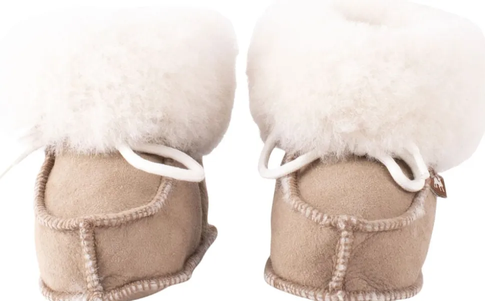 Shepherd Gävle et par behagelige og varme babysutsko i fåreskind. Sutskoene er udformet i en ankelhøj model med en bred foldet kant i fåreskind. De har snørelukning, hvilket gør, at de sidder godt og er lette at tage af og på. Blød sål i ruskind.